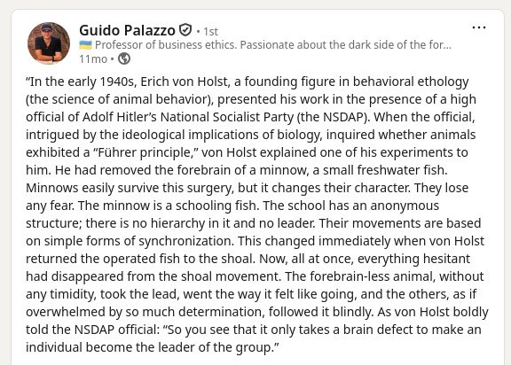 Here's a story about braindamage, Hitler and some minnows. This kinda expains the root cause of almost everything that's unjust in the world.